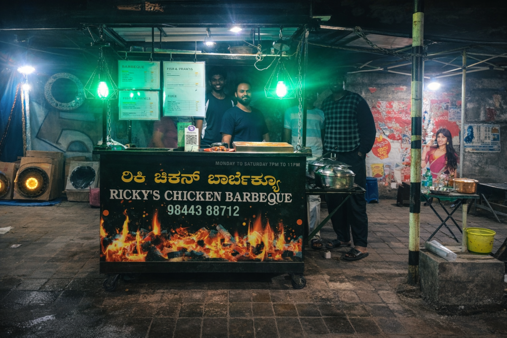 ಇದೀಗ ನಗರದಲ್ಲಿ ಸ್ಟ್ರೀಟ್ ಫುಡ್ ಸಂಸ್ಕೃತಿ ವೇಗವಾಗಿ ಬೆಳೆಯುತ್ತಿದೆ. ಆ ಬೆಳವಣಿಗೆಯಲ್ಲಿ Ricky’s Chicken Barbeque ತನ್ನದೇ ಆದ ಗುರುತನ್ನು ನಿರ್ಮಿಸಿಕೊಂಡಿದೆ. ಕಡಿಮೆ ಬೆಲೆಯಲ್ಲಿ ಉತ್ತಮ ರುಚಿಯ ಮಾಂಸಾಹಾರವನ್ನು ಸವಿಯಲು ಬಯಸುವವರಿಗೆ ಇದು ಒಂದು ಉತ್ತಮ ಆಯ್ಕೆ.