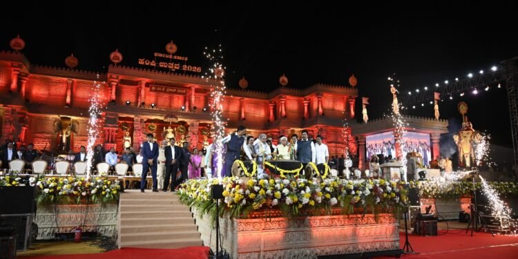 ಹಂಪಿಯ ಶ್ರೀ.ಎಂ.ಪಿ.ಪ್ರಕಾಶ್ ವೇದಿಕೆಯಲ್ಲಿ ಶುಕ್ರವಾರ ಮೂರು ದಿನಗಳ ಹಂಪಿ ಉತ್ಸವ-2026 ಕಾರ್ಯಕ್ರಮಕ್ಕೆ ನಗಾರಿ ಹಾಗೂ ಡೊಳ್ಳು ಬಾರಿಸುವ ಮೂಲಕ ವಿದ್ಯುಕ್ತ ಚಾಲನೆ ನೀಡಿ ಮುಖ್ಯಮಂತ್ರಿ ಸಿದ್ದರಾಮಯ್ಯ ಮಾತನಾಡಿದರು.