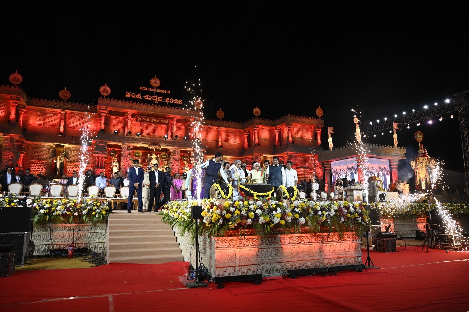 ಹಂಪಿಯ ಶ್ರೀ.ಎಂ.ಪಿ.ಪ್ರಕಾಶ್ ವೇದಿಕೆಯಲ್ಲಿ ಶುಕ್ರವಾರ ಮೂರು ದಿನಗಳ ಹಂಪಿ ಉತ್ಸವ-2026 ಕಾರ್ಯಕ್ರಮಕ್ಕೆ ನಗಾರಿ ಹಾಗೂ ಡೊಳ್ಳು ಬಾರಿಸುವ ಮೂಲಕ ವಿದ್ಯುಕ್ತ ಚಾಲನೆ ನೀಡಿ ಮುಖ್ಯಮಂತ್ರಿ ಸಿದ್ದರಾಮಯ್ಯ ಮಾತನಾಡಿದರು.