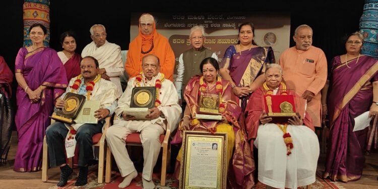 ಬೆಂಗಳೂರು, ಫೆ.24:ನಗರದ ಕನ್ನಡ ಭವನದಲ್ಲಿರುವ ನಯನ ಸಭಾಂಗಣದಲ್ಲಿ ಕದಳಿ ಮಹಿಳಾ ವೇದಿಕೆ, ಬೆಂಗಳೂರು ಹಾಗೂ ಬೆಂಗಳೂರು ನಗರ ಜಿಲ್ಲಾ ಶರಣ ಸಾಹಿತ್ಯ ಪರಿಷತ್ತು ಸಂಯುಕ್ತವಾಗಿ ಆಯೋಜಿಸಿದ್ದ ಕದಳಿ ಪ್ರಶಸ್ತಿ ಪ್ರದಾನ ಸಮಾರಂಭ ಭವ್ಯವಾಗಿ ನೆರವೇರಿತು. ಕಾರ್ಯಕ್ರಮದಲ್ಲಿ ಪದ್ಮಶ್ರೀ ಪುರಸ್ಕೃತೆ ಎಸ್.ಬಿ. ಸುಶೀಲಮ್ಮ ಅವರಿಗೆ ಗೌರವ ಸನ್ಮಾನ ಸಲ್ಲಿಸಲಾಯಿತು.