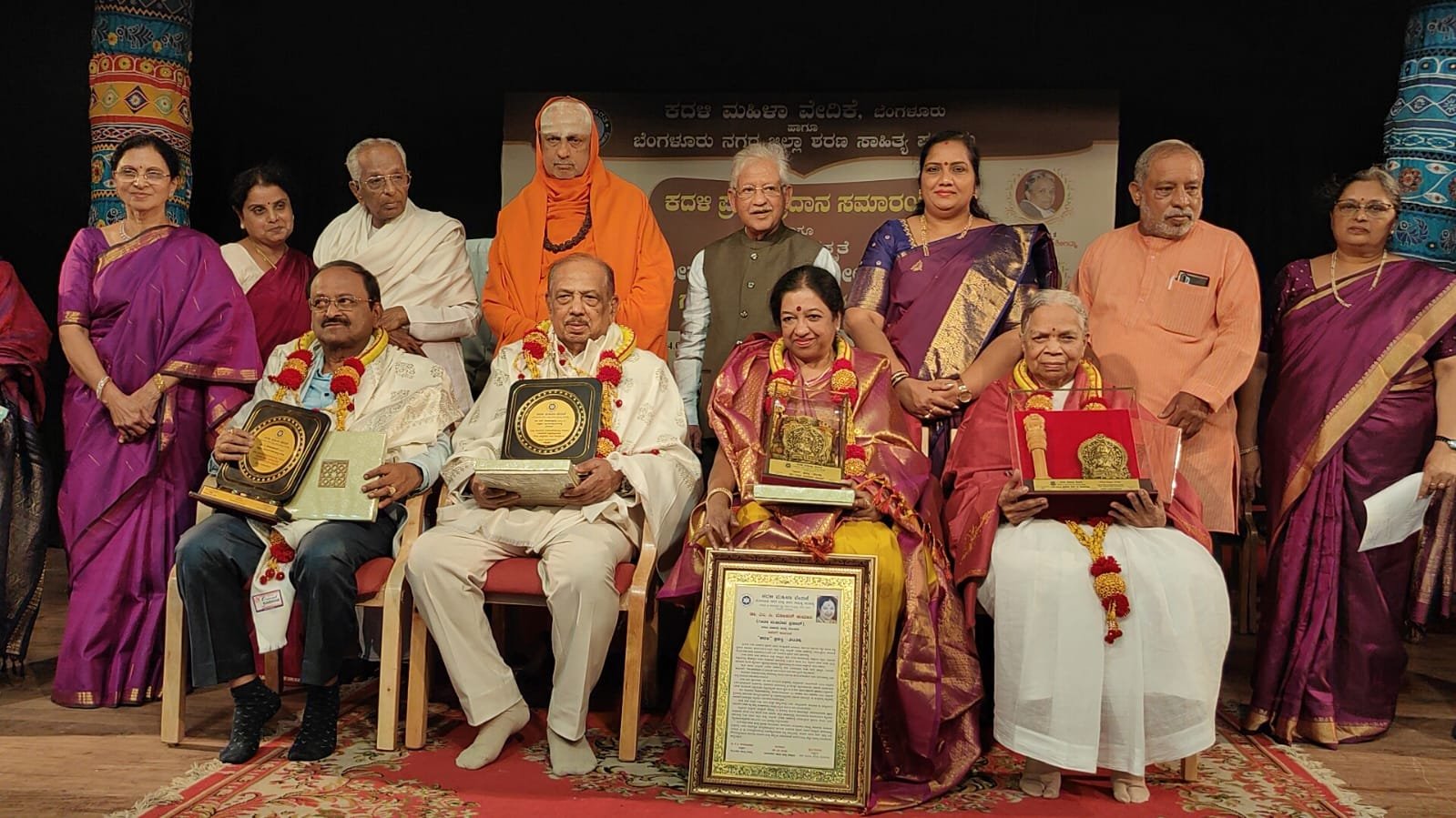ಬೆಂಗಳೂರು, ಫೆ.24:ನಗರದ ಕನ್ನಡ ಭವನದಲ್ಲಿರುವ ನಯನ ಸಭಾಂಗಣದಲ್ಲಿ ಕದಳಿ ಮಹಿಳಾ ವೇದಿಕೆ, ಬೆಂಗಳೂರು ಹಾಗೂ ಬೆಂಗಳೂರು ನಗರ ಜಿಲ್ಲಾ ಶರಣ ಸಾಹಿತ್ಯ ಪರಿಷತ್ತು ಸಂಯುಕ್ತವಾಗಿ ಆಯೋಜಿಸಿದ್ದ ಕದಳಿ ಪ್ರಶಸ್ತಿ ಪ್ರದಾನ ಸಮಾರಂಭ ಭವ್ಯವಾಗಿ ನೆರವೇರಿತು. ಕಾರ್ಯಕ್ರಮದಲ್ಲಿ ಪದ್ಮಶ್ರೀ ಪುರಸ್ಕೃತೆ ಎಸ್.ಬಿ. ಸುಶೀಲಮ್ಮ ಅವರಿಗೆ ಗೌರವ ಸನ್ಮಾನ ಸಲ್ಲಿಸಲಾಯಿತು.