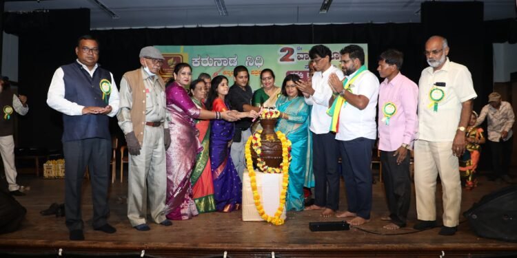 ಬೆಂಗಳೂರು, ಏಪ್ರಿಲ್ 04: ಕರುನಾಡ ನಿಧಿ ಕನ್ನಡ ವಾರಪತ್ರಿಕೆಯ 2ನೇ ವಾರ್ಷಿಕೋತ್ಸವದ ಅಂಗವಾಗಿ ರವೀಂದ್ರ ಕಲಾಕ್ಷೇತ್ರ ಆವರಣದಲ್ಲಿರುವ ನಯನ ಸಭಾಂಗಣದಲ್ಲಿ ಪ್ರಶಸ್ತಿ ಪ್ರದಾನ ಸಮಾರಂಭ ಹಾಗೂ ಸಾಂಸ್ಕೃತಿಕ ಹಬ್ಬ ಅದ್ದೂರಿಯಾಗಿ ನೆರವೇರಿತು.ರಾಜ್ಯದ ವಿವಿಧ ಭಾಗಗಳಿಂದ ಆಗಮಿಸಿದ ಗಣ್ಯರು, ಸಾಧಕರು ಹಾಗೂ ಅಭಿಮಾನಿಗಳು ಈ ಕಾರ್ಯಕ್ರಮಕ್ಕೆ ಸಾಕ್ಷಿಯಾದರು.