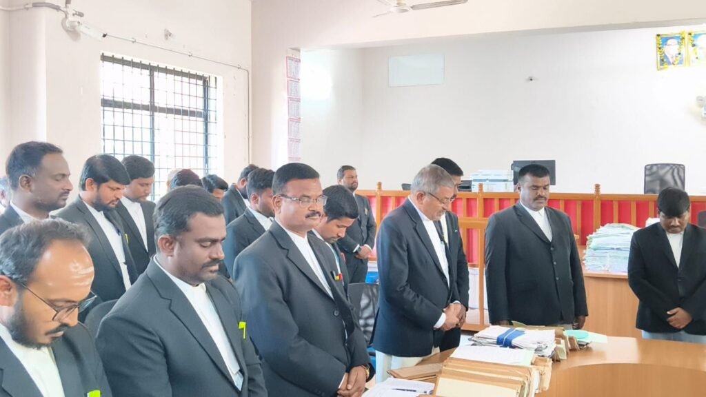 ಗುಡಿಬಂಡೆ ಜ30ರಂದು ನ್ಯಾಯಾಲಯದಲ್ಲಿ ಮಾನ್ಯ ಗೌರವಾನ್ವಿತ ಹಿರಿಯ ಶ್ರೇಣಿ ನ್ಯಾಯಾಧೀಶರಾದ ಶ್ರೀ ಪ್ರೇಮ್ ಕುಮಾರ್ ರವರ ಅಧ್ಯಕ್ಷತೆಯಲ್ಲಿ ಮೌನ ಆಚರಿಸಲಾಯಿತು ಈ ಸಂದರ್ಭದಲ್ಲಿ ವಕೀಲರ ಸಂಘದ ಎಲ್ಲಾ ಪದಾಧಿಕಾರಿಗಳು ಸದಸ್ಯರು ಮತ್ತು ನ್ಯಾಯಾಲಯದ ಸಿಬ್ಬಂದಿ ವರ್ಗದವರು ಭಾಗವಹಿಸಿದ್ದರು