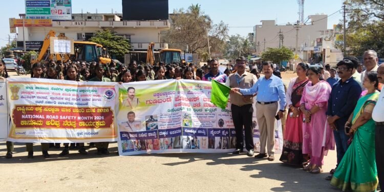 ಗುಡಿಬಂಡೆ ಜ 22 ರಂದು ಗುಡಿಬಂಡೆ ಪಟ್ಟಣದ ಅಂಬೇಡ್ಕರ್ ವೃತ್ತದಲ್ಲಿ ಕರ್ನಾಟಕ ರಾಜ್ಯ ಕಾನೂನು ಸೇವೆಗಳ ಪ್ರಾಧಿಕಾರ ನಿರ್ದೇಶನದ ಮೇರೆಗೆ ತಾಲೂಕು ಕಾನೂನು ಸೇವಾ ಸಮಿತಿ ವಕೀಲರ ಸಂಘ ತಾಲೂಕು ಪಂಚಾಯಿತಿ ಶಿಕ್ಷಣ ಇಲಾಖೆ ಪೊಲೀಸ್ ಇಲಾಖೆ ಇತರೆ ಇಲಾಖೆಗಳು ಇವರ ಸಂಯುಕ್ತ ಆಶ್ರಯದಲ್ಲಿ ರಾಷ್ಟ್ರೀಯ ರಸ್ತೆ ಸುರಕ್ಷತಾ ಮತ್ತು ಪೋಕ್ಸೋ ಕಾಯ್ದೆ ಬಗ್ಗೆ ಅರಿವು ಕಾರ್ಯಕ್ರಮವನ್ನು ಹಮ್ಮಿಕೊಳ್ಳಲಾಗಿತ್ತು ಈ ಕಾರ್ಯಕ್ರಮಕ್ಕೆ ಶಿಕ್ಷಣ ಇಲಾಖೆ ಡಿ ಡಿ ಪಿ ಐ ಅಧಿಕಾರಿಗಳಾದ ರಮೇಶ್ ಹಾಗೂ ತಾಲೂಕು ಮಟ್ಟದ ಅಧಿಕಾರಿಗಳು ಹಸಿರು ನಿಶಾನೆ ತೋರಿಸುವ ಮೂಲಕ ಕಾರ್ಯಕ್ರಮಕ್ಕೆ ಚಾಲನೆ ನೀಡಿದರು ಸಂಘದ ಅಧ್ಯಕ್ಷ ಟಿ ಸಿ ಅಶ್ವತ್ ರೆಡ್ಡಿ ರವರು ಕಾರ್ಯಕ್ರಮದ ಅಧ್ಯಕ್ಷತೆಯನ್ನು ವಹಿಸಿದ್ದರು . ಸಂಪನ್ಮೂಲ ವ್ಯಕ್ತಿಯಾಗಿ ಗುಡಿಬಂಡೆ ಪೊಲೀಸ್ ಠಾಣೆಯ ಆರಕ್ಷಕ ವೃತ್ತ ಉಪನಿರೀಕ್ಷಕರಾದ ರಮೇಶ್ ರವರು ಹೆಲ್ಮೆಟ್ ಕಡ್ಡಾಯ ಮತ್ತು ರಸ್ತೆ ನಿಯಮಗಳನ್ನು ಪಾಲಿಸಿ ಎಂದು ಮಾಹಿತಿ ನೀಡಿದರು ಇದೇ ಸಂದರ್ಭದಲ್ಲಿ ತಾಲೂಕು ಪಂಚಾಯಿತಿ ಕಾರ್ಯನಿರ್ವಹಣಾಧಿಕಾರಿಗಳಾದ ನಾಗಮಣಿ ಕ್ಷೇತ್ರ ಶಿಕ್ಷಣಾಧಿಕಾರಿ ಕೃಷ್ಣ ಕುಮಾರಿ ಇತರೆ ಸರ್ಕಾರಿ ಇಲಾಖೆಗಳ ಅಧಿಕಾರಿಗಳು ಸಹ ಶಿಕ್ಷಕರು ದೈಹಿಕ ಶಿಕ್ಷಕರು ನ್ಯಾಯಾಲಯದ ಸಿಬ್ಬಂದಿ ಪೊಲೀಸ್ ಇಲಾಖೆ ಸಿಬ್ಬಂದಿ ಸಾರ್ವಜನಿಕರು ಹಾಗೂ ವಿದ್ಯಾರ್ಥಿಗಳು ಹಾಜರಿದ್ದರು.