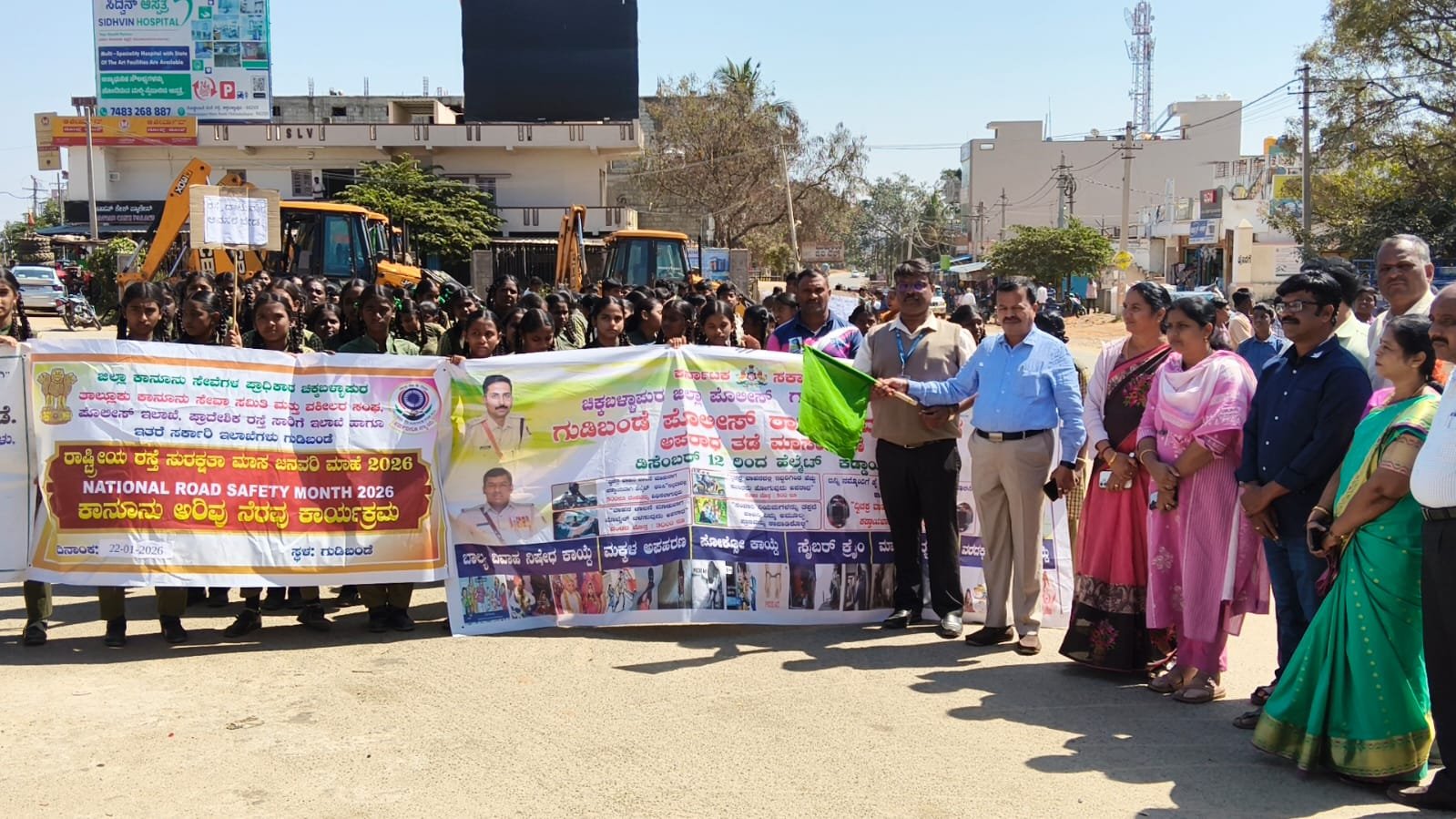 ಗುಡಿಬಂಡೆ ಜ 22 ರಂದು ಗುಡಿಬಂಡೆ ಪಟ್ಟಣದ ಅಂಬೇಡ್ಕರ್ ವೃತ್ತದಲ್ಲಿ ಕರ್ನಾಟಕ ರಾಜ್ಯ ಕಾನೂನು ಸೇವೆಗಳ ಪ್ರಾಧಿಕಾರ ನಿರ್ದೇಶನದ ಮೇರೆಗೆ ತಾಲೂಕು ಕಾನೂನು ಸೇವಾ ಸಮಿತಿ ವಕೀಲರ ಸಂಘ ತಾಲೂಕು ಪಂಚಾಯಿತಿ ಶಿಕ್ಷಣ ಇಲಾಖೆ ಪೊಲೀಸ್ ಇಲಾಖೆ ಇತರೆ ಇಲಾಖೆಗಳು ಇವರ ಸಂಯುಕ್ತ ಆಶ್ರಯದಲ್ಲಿ ರಾಷ್ಟ್ರೀಯ ರಸ್ತೆ ಸುರಕ್ಷತಾ ಮತ್ತು ಪೋಕ್ಸೋ ಕಾಯ್ದೆ ಬಗ್ಗೆ ಅರಿವು ಕಾರ್ಯಕ್ರಮವನ್ನು ಹಮ್ಮಿಕೊಳ್ಳಲಾಗಿತ್ತು ಈ ಕಾರ್ಯಕ್ರಮಕ್ಕೆ ಶಿಕ್ಷಣ ಇಲಾಖೆ ಡಿ ಡಿ ಪಿ ಐ ಅಧಿಕಾರಿಗಳಾದ ರಮೇಶ್ ಹಾಗೂ ತಾಲೂಕು ಮಟ್ಟದ ಅಧಿಕಾರಿಗಳು ಹಸಿರು ನಿಶಾನೆ ತೋರಿಸುವ ಮೂಲಕ ಕಾರ್ಯಕ್ರಮಕ್ಕೆ ಚಾಲನೆ ನೀಡಿದರು ಸಂಘದ ಅಧ್ಯಕ್ಷ ಟಿ ಸಿ ಅಶ್ವತ್ ರೆಡ್ಡಿ ರವರು ಕಾರ್ಯಕ್ರಮದ ಅಧ್ಯಕ್ಷತೆಯನ್ನು ವಹಿಸಿದ್ದರು . ಸಂಪನ್ಮೂಲ ವ್ಯಕ್ತಿಯಾಗಿ ಗುಡಿಬಂಡೆ ಪೊಲೀಸ್ ಠಾಣೆಯ ಆರಕ್ಷಕ ವೃತ್ತ ಉಪನಿರೀಕ್ಷಕರಾದ ರಮೇಶ್ ರವರು ಹೆಲ್ಮೆಟ್ ಕಡ್ಡಾಯ ಮತ್ತು ರಸ್ತೆ ನಿಯಮಗಳನ್ನು ಪಾಲಿಸಿ ಎಂದು ಮಾಹಿತಿ ನೀಡಿದರು ಇದೇ ಸಂದರ್ಭದಲ್ಲಿ ತಾಲೂಕು ಪಂಚಾಯಿತಿ ಕಾರ್ಯನಿರ್ವಹಣಾಧಿಕಾರಿಗಳಾದ ನಾಗಮಣಿ ಕ್ಷೇತ್ರ ಶಿಕ್ಷಣಾಧಿಕಾರಿ ಕೃಷ್ಣ ಕುಮಾರಿ ಇತರೆ ಸರ್ಕಾರಿ ಇಲಾಖೆಗಳ ಅಧಿಕಾರಿಗಳು ಸಹ ಶಿಕ್ಷಕರು ದೈಹಿಕ ಶಿಕ್ಷಕರು ನ್ಯಾಯಾಲಯದ ಸಿಬ್ಬಂದಿ ಪೊಲೀಸ್ ಇಲಾಖೆ ಸಿಬ್ಬಂದಿ ಸಾರ್ವಜನಿಕರು ಹಾಗೂ ವಿದ್ಯಾರ್ಥಿಗಳು ಹಾಜರಿದ್ದರು.